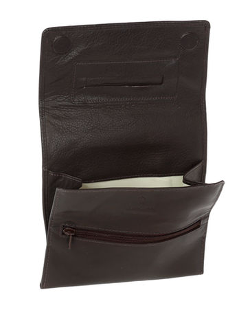 Δερμάτινη Καπνοθήκη•15 x 7.5 cm•θήκη για καπνό με επένδυση λάτεξ•εσωτερική τσέπη με φερμουάρ για φιλτράκια•εσωτερική θέση για χαρτάκια•εξωτερική θήκη για αναπτήρα•διπλό μαγνητικό κούμπωμα